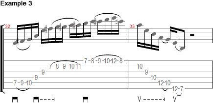 In Example 2 I use the same basic idea as above except I use a six string arpeggio form.