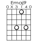 1. A super simple E69 chord. Nothing fancy here, just the standard voicing with the root up on top.