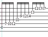 Now, lets try some wider intervals but with the exact same 1-3,1-3, etc. sweeping formula. This is an Emin7(add 13)(no 5) arpeggio. or if you started on C (8th fret, sixth string); this would be a Cadd9 arpeggio.