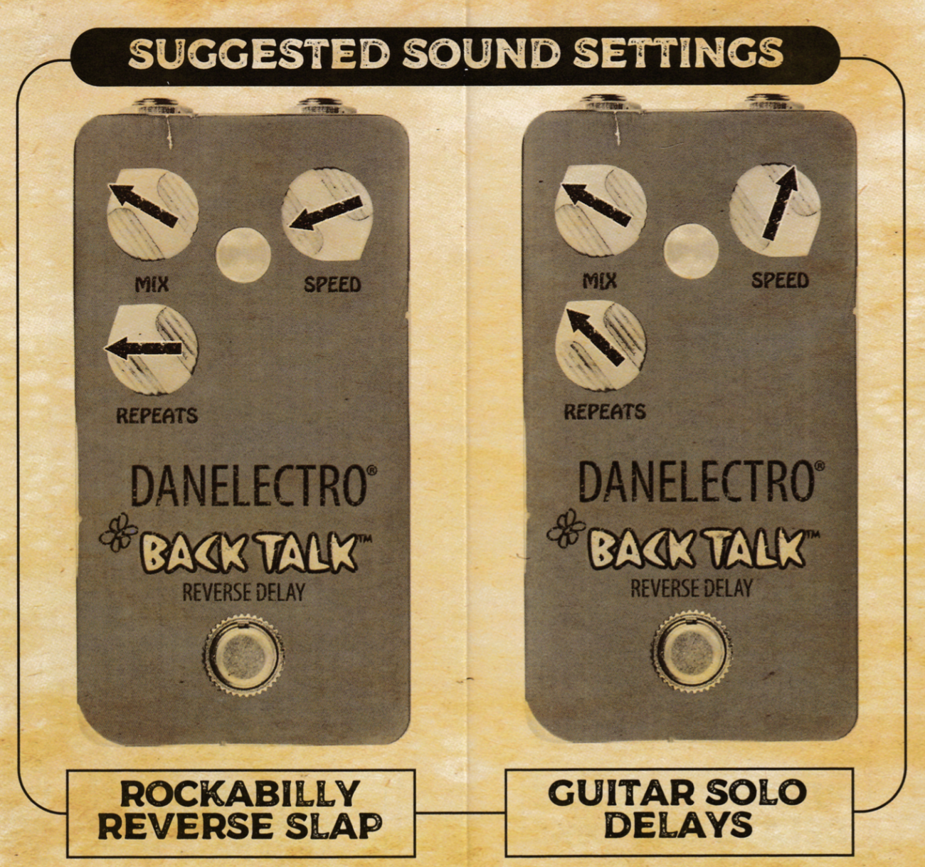 The Danelectro Back Talk Reverse Delay can really be thought of as many pedals in one. This green stomper lets you go from subtle reverse/delay, to a full-on psychedelic freak out, to lush mega-effects... and lots in between. The three controls for Mix, Speed and Repeats allow for mind-blowing shading and shaping of a massive array of sounds and moods. It's not an effect you need on every song - but when called upon, the Danelectro Back Talk reverse delay pedal's rich, chewy character boldly speaks for itself.