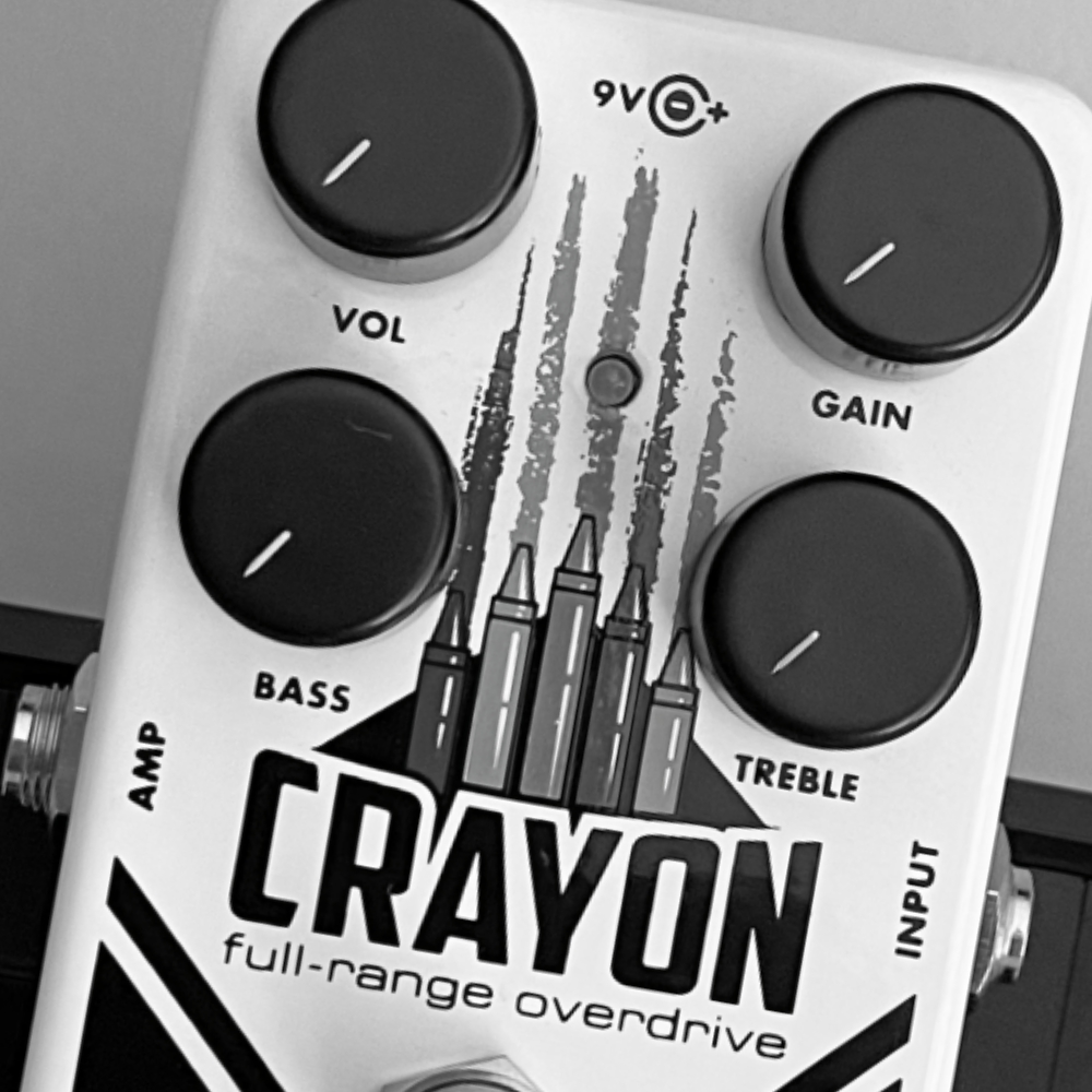 The EHX Crayon Full-Range Overdrive is a versatile overdrive with independent Bass and Treble controls and an open frequency range that provides players with a musical alternative to customary mid-focused overdrive pedals. It delivers a range of sounds going from a suggestion of dirt to full-on distortion and is equally impressive all by itself or when driving another overdrive pedal.